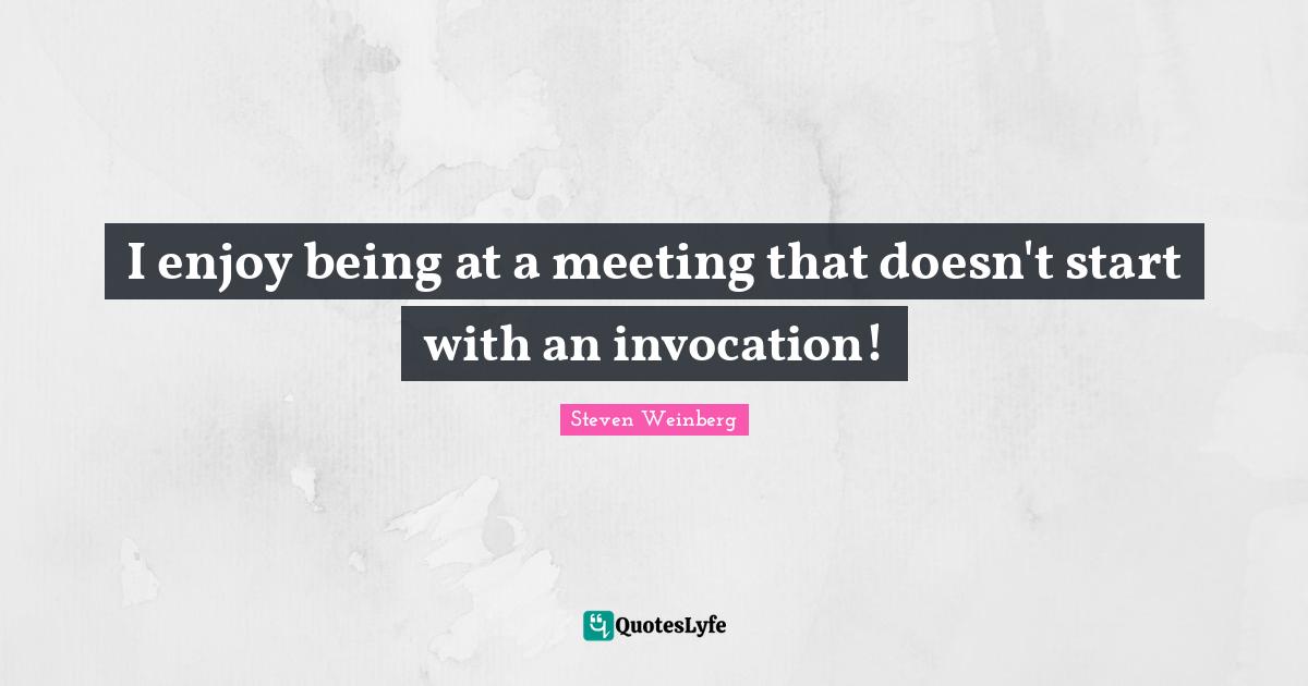 This page presents the quote "I enjoy being at a meeting that doesn't start with an invocation!". Author of this quote is Steven Weinberg. This quote is about enjoy, invocation, atheism,.
