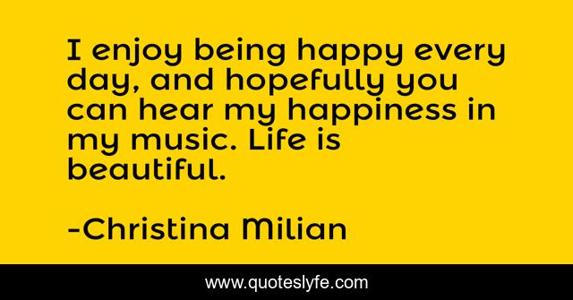 This page presents the quote "I enjoy being happy every day, and hopefully you can hear my happiness in my music. Life is beautiful.". Author of this quote is Christina Milian. This quote is about beautiful, life, happiness,.