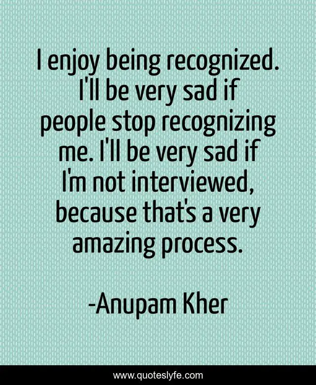 This page presents the quote "I enjoy being recognized. I'll be very sad if people stop recognizing me. I'll be very sad if I'm not interviewed, because that's a very amazing process.". Author of this quote is Anupam Kher. This quote is about me, enjoy, amazing,.