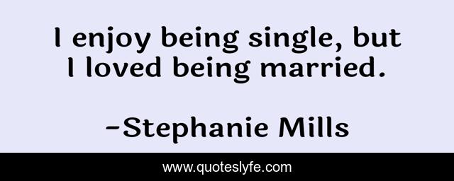 This page presents the quote "I enjoy being single, but I loved being married.". Author of this quote is Stephanie Mills. This quote is about enjoy, loved, single,.