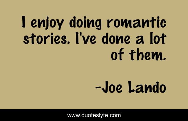 This page presents the quote "I enjoy doing romantic stories. I've done a lot of them.". Author of this quote is Joe Lando. This quote is about enjoy, done,.