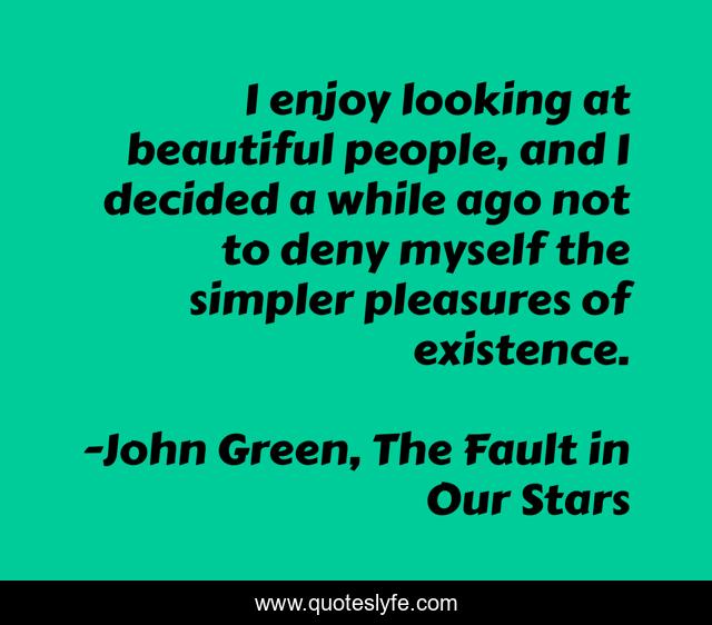 "John Green, The Fault in Our Stars Quotes." Quoteslyfe.com, 2025. Sat. 06 Dec. 2025. <https://www.quoteslyfe.com/quote/I-enjoy-looking-at-beautiful-people-and-60506>.