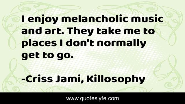 "Criss Jami, Killosophy Quotes." Quoteslyfe.com, 2025. Mon. 08 Dec. 2025. <https://www.quoteslyfe.com/quote/I-enjoy-melancholic-music-and-art-They-16544>.