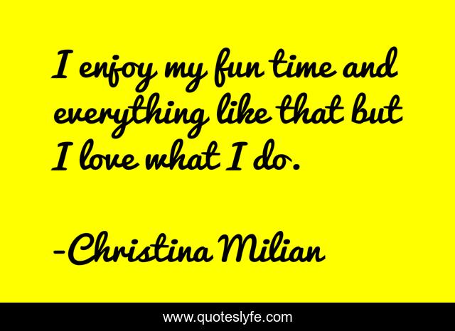 This page presents the quote "I enjoy my fun time and everything like that but I love what I do.". Author of this quote is Christina Milian. This quote is about fun, enjoy, love, affection,.