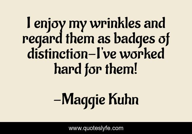 "Maggie Kuhn Quotes." Quoteslyfe.com, 2025. Mon. 08 Dec. 2025. <https://www.quoteslyfe.com/quote/I-enjoy-my-wrinkles-and-regard-them-272300>.