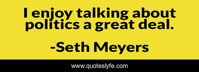 This page presents the quote "I enjoy talking about politics a great deal.". Author of this quote is Seth Meyers. This quote is about enjoy, talking, great,.