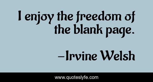 This page presents the quote "I enjoy the freedom of the blank page.". Author of this quote is Irvine Welsh. This quote is about enjoy, page, blank,.