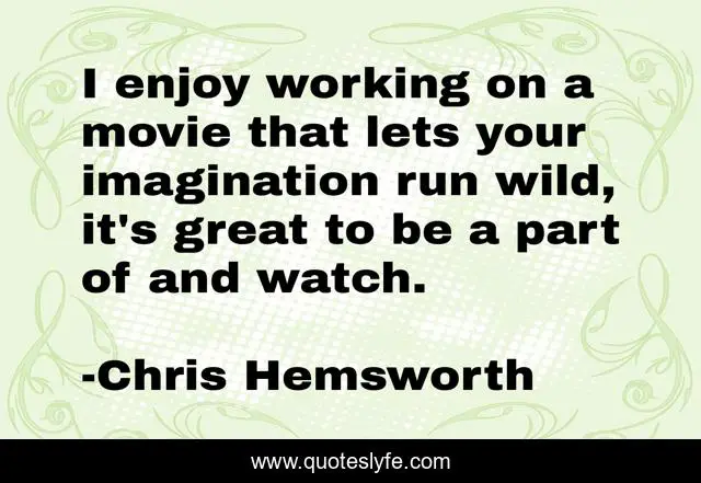 This page presents the quote "I enjoy working on a movie that lets your imagination run wild, it's great to be a part of and watch.". Author of this quote is Chris Hemsworth. This quote is about enjoy, great, working,.