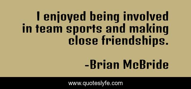 This page presents the quote "I enjoyed being involved in team sports and making close friendships.". Author of this quote is Brian McBride. This quote is about being, involved, team,.