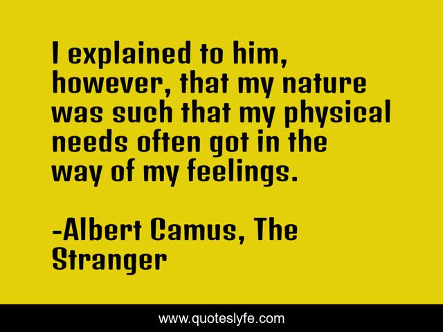 "Albert Camus, The Stranger Quotes." Quoteslyfe.com, 2025. Fri. 05 Dec. 2025. <https://www.quoteslyfe.com/quote/I-explained-to-him-however-that-my-161792>.