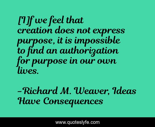 "Richard M. Weaver, Ideas Have Consequences Quotes." Quoteslyfe.com, 2025. Sat. 06 Dec. 2025. <https://www.quoteslyfe.com/quote/I-f-we-feel-that-creation-does-107658>.