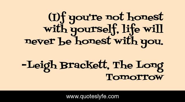 "Leigh Brackett, The Long Tomorrow Quotes." Quoteslyfe.com, 2025. Fri. 05 Dec. 2025. <https://www.quoteslyfe.com/quote/I-f-you-re-not-honest-with-165987>.