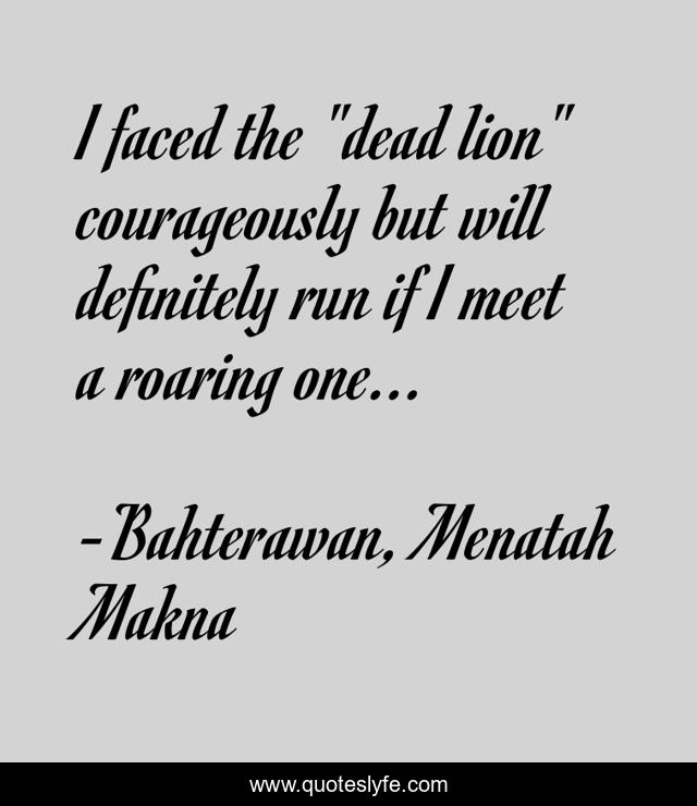 "Bahterawan, Menatah Makna Quotes." Quoteslyfe.com, 2025. Sat. 06 Dec. 2025. <https://www.quoteslyfe.com/quote/I-faced-the-dead-lion-courageously-but-71934>.