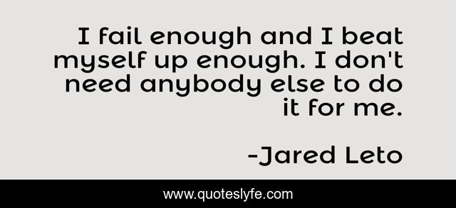 This page presents the quote "I fail enough and I beat myself up enough. I don't need anybody else to do it for me.". Author of this quote is Jared Leto. .