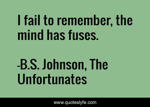 This page presents the quote "I fail to remember, the mind has fuses.". Author of this quote is B.S. Johnson, The Unfortunates. .