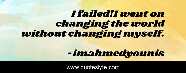 This page presents the quote "I failed!I went on changing the world without changing myself.". Author of this quote is imahmedyounis. This quote is about confidence, positive, motivational, optimistic, inspirational, enthusiasm,.