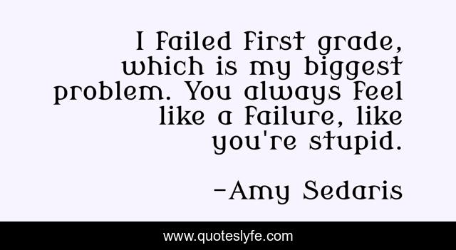 This page presents the quote "I failed first grade, which is my biggest problem. You always feel like a failure, like you're stupid.". Author of this quote is Amy Sedaris. This quote is about problem, stupid,.