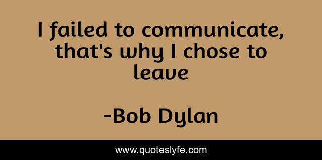 This page presents the quote "I failed to communicate, that's why I chose to leave". Author of this quote is Bob Dylan. .