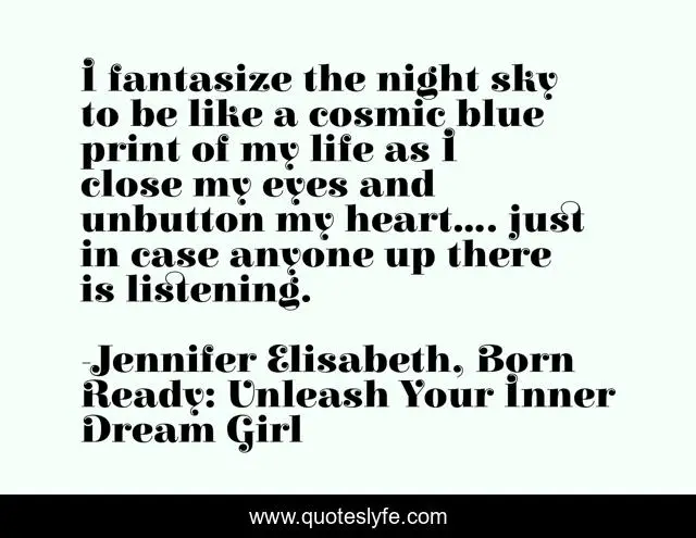 "Jennifer Elisabeth, Born Ready: Unleash Your Inner Dream Girl Quotes." Quoteslyfe.com, 2025. Mon. 08 Dec. 2025. <https://www.quoteslyfe.com/quote/I-fantasize-the-night-sky-to-be-19482>.