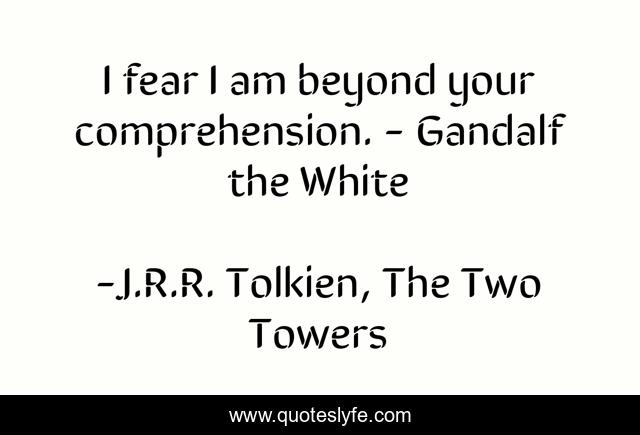 This page presents the quote "I fear I am beyond your comprehension. - Gandalf the White". Author of this quote is J.R.R. Tolkien, The Two Towers. This quote is about gandalf-the-white, lord-of-the-rings, the-two-towers, fantasy, fear, gandalf,.