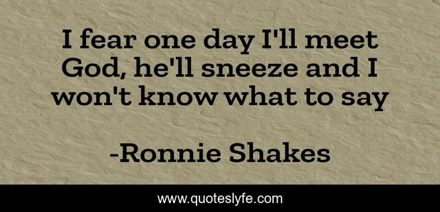 This page presents the quote "I fear one day I'll meet God, he'll sneeze and I won't know what to say". Author of this quote is Ronnie Shakes. .