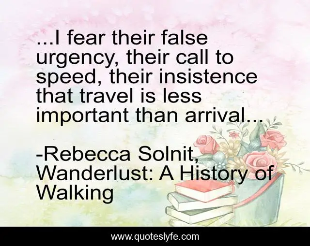 "Rebecca Solnit, Wanderlust: A History of Walking Quotes." Quoteslyfe.com, 2025. Fri. 05 Dec. 2025. <https://www.quoteslyfe.com/quote/I-fear-their-false-urgency-their-call-137442>.