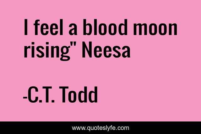 This page presents the quote "I feel a blood moon rising" Neesa". Author of this quote is C.T. Todd. This quote is about drama, action-adventure, horror, romance, vampire,.