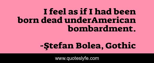This page presents the quote "I feel as if I had been born dead underAmerican bombardment.". Author of this quote is Åžtefan Bolea, Gothic. This quote is about melancholy, despair, nihilism,.