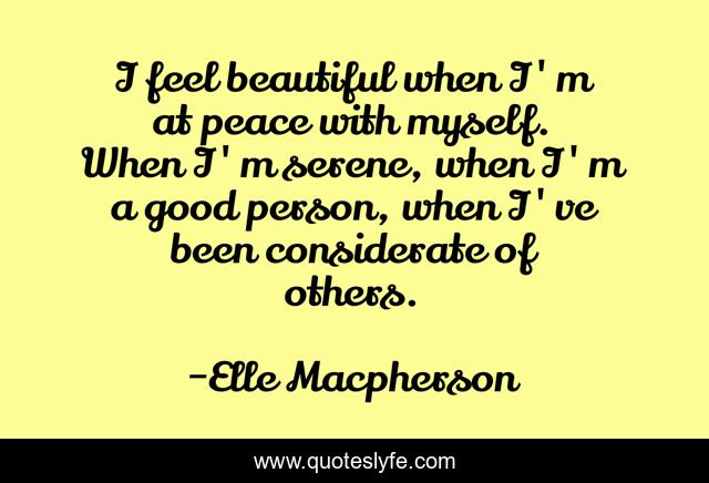 This page presents the quote "I feel beautiful when I'm at peace with myself. When I'm serene, when I'm a good person, when I've been considerate of others.". Author of this quote is Elle Macpherson. This quote is about beautiful, myself, good,.