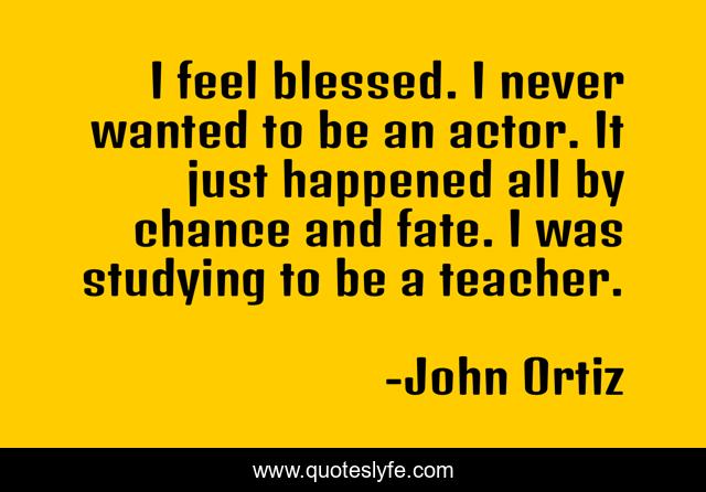 This page presents the quote "I feel blessed. I never wanted to be an actor. It just happened all by chance and fate. I was studying to be a teacher.". Author of this quote is John Ortiz. This quote is about chance, blessed, fate,.