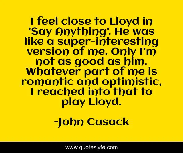 I feel close to Lloyd in 'Say Anything'. He was like a super-interesting version of me. Only I'm not as good as him. Whatever part of me is romantic and optimistic, I reached into that to play Lloyd.
