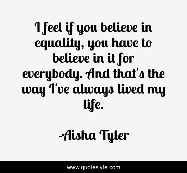 This page presents the quote "I feel if you believe in equality, you have to believe in it for everybody. And that's the way I've always lived my life.". Author of this quote is Aisha Tyler. This quote is about life, believe, my life,.