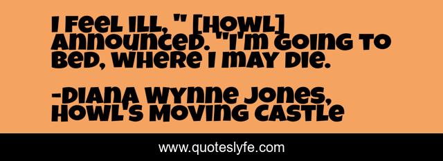 "Diana Wynne Jones, Howl's Moving Castle Quotes." Quoteslyfe.com, 2025. Mon. 08 Dec. 2025. <https://www.quoteslyfe.com/quote/I-feel-ill-Howl-announced-I-m-6200>.