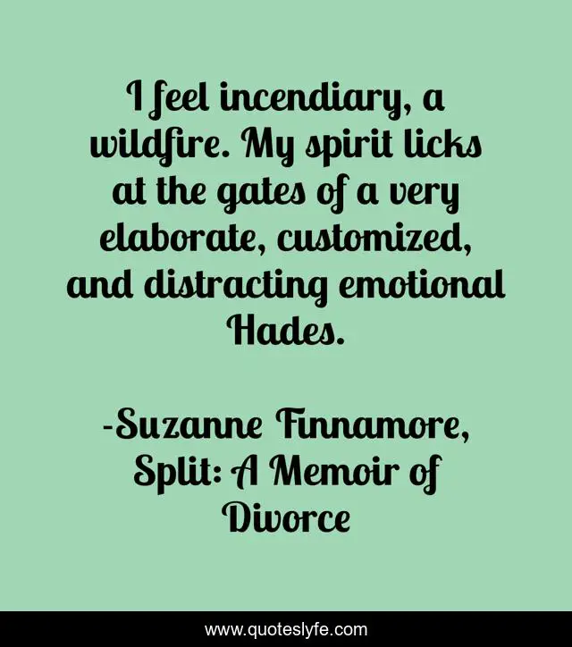 "Suzanne Finnamore, Split: A Memoir of Divorce Quotes." Quoteslyfe.com, 2025. Mon. 08 Dec. 2025. <https://www.quoteslyfe.com/quote/I-feel-incendiary-a-wildfire-My-spirit-35139>.