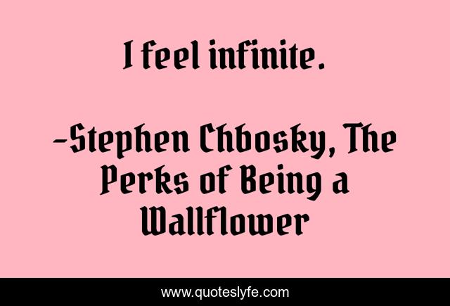 "Stephen Chbosky, The Perks of Being a Wallflower Quotes." Quoteslyfe.com, 2025. Mon. 08 Dec. 2025. <https://www.quoteslyfe.com/quote/I-feel-infinite-4829>.