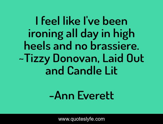 This page presents the quote "I feel like I've been ironing all day in high heels and no brassiere. ~Tizzy Donovan, Laid Out and Candle Lit". Author of this quote is Ann Everett. This quote is about mystery, funny-romance, romantic-comedy, humor, texas,.