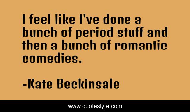 This page presents the quote "I feel like I've done a bunch of period stuff and then a bunch of romantic comedies.". Author of this quote is Kate Beckinsale. This quote is about feel, done, like,.