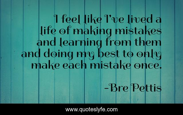 This page presents the quote "I feel like I've lived a life of making mistakes and learning from them and doing my best to only make each mistake once.". Author of this quote is Bre Pettis. This quote is about life, mistakes, best,.