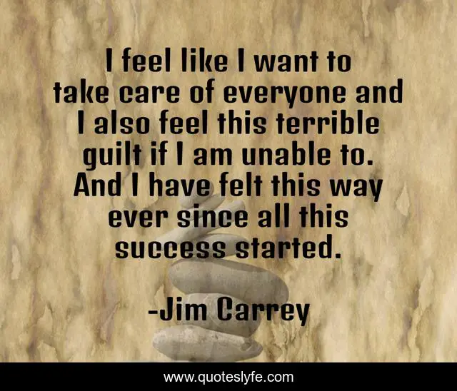 This page presents the quote "I feel like I want to take care of everyone and I also feel this terrible guilt if I am unable to. And I have felt this way ever since all this success started.". Author of this quote is Jim Carrey. .