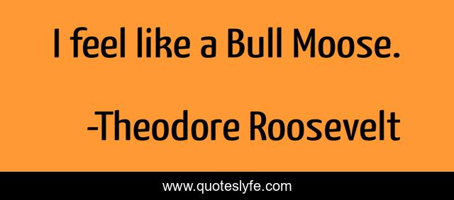 This page presents the quote "I feel like a Bull Moose.". Author of this quote is Theodore Roosevelt. .