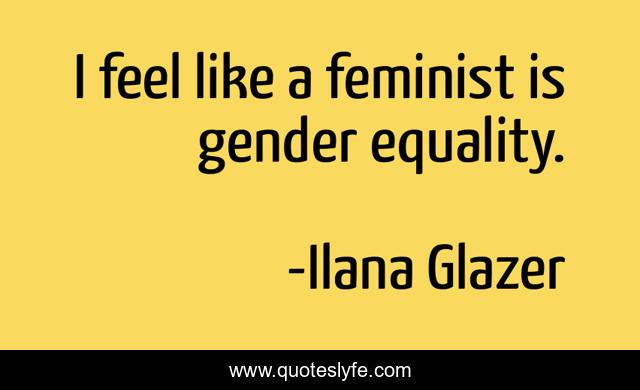 This page presents the quote "I feel like a feminist is gender equality.". Author of this quote is Ilana Glazer. This quote is about feel, gender, like,.