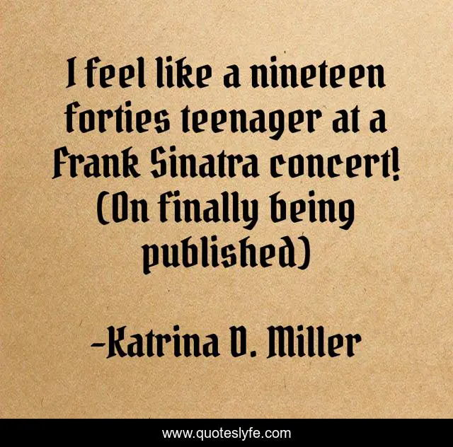 This page presents the quote "I feel like a nineteen forties teenager at a Frank Sinatra concert! (On finally being published)". Author of this quote is Katrina D. Miller. This quote is about 1940s, happy, frank-sinatra, published,.