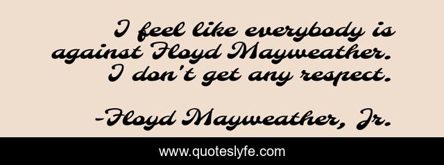 This page presents the quote "I feel like everybody is against Floyd Mayweather. I don't get any respect.". Author of this quote is Floyd Mayweather, Jr.. This quote is about feel, i feel like, like,.
