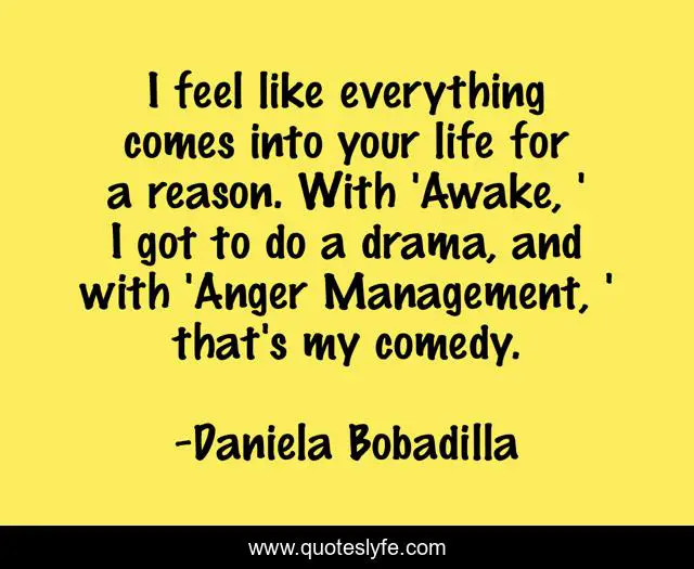 This page presents the quote "I feel like everything comes into your life for a reason. With 'Awake, ' I got to do a drama, and with 'Anger Management, ' that's my comedy.". Author of this quote is Daniela Bobadilla. This quote is about drama, life, management,.
