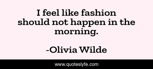This page presents the quote "I feel like fashion should not happen in the morning.". Author of this quote is Olivia Wilde. This quote is about feel, fashion, like,.