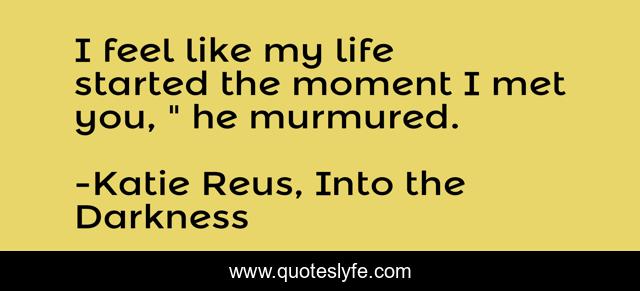 This page presents the quote "I feel like my life started the moment I met you, " he murmured.". Author of this quote is Katie Reus, Into the Darkness. This quote is about shifters, paranormal-romance, demons, dragons,.