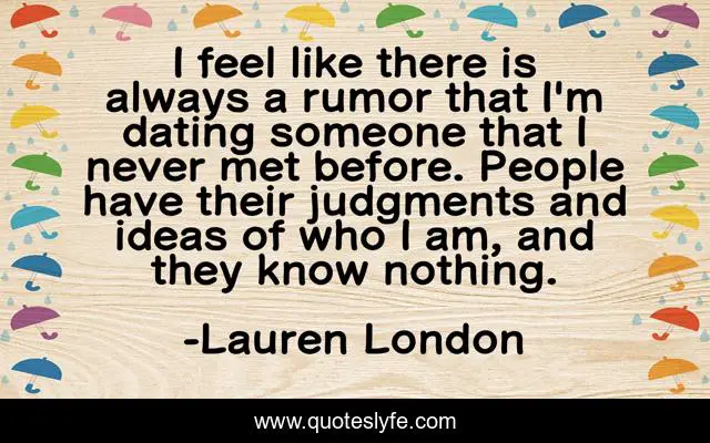 This page presents the quote "I feel like there is always a rumor that I'm dating someone that I never met before. People have their judgments and ideas of who I am, and they know nothing.". Author of this quote is Lauren London. This quote is about ideas, people,.