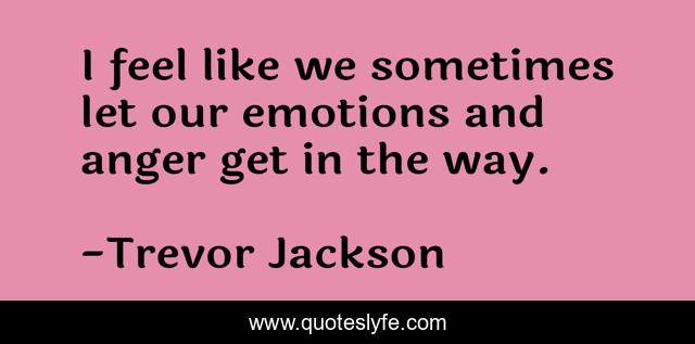 This page presents the quote "I feel like we sometimes let our emotions and anger get in the way.". Author of this quote is Trevor Jackson. This quote is about sometimes, emotions, way,.