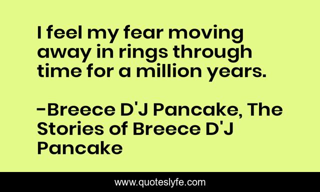 This page presents the quote "I feel my fear moving away in rings through time for a million years.". Author of this quote is Breece D'J Pancake, The Stories of Breece D'J Pancake. This quote is about authorship, confidence, writing-life,.