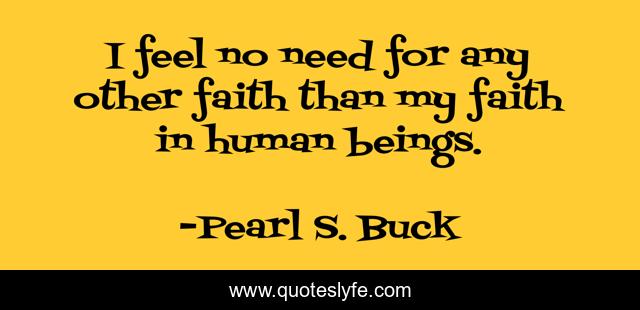 This page presents the quote "I feel no need for any other faith than my faith in human beings.". Author of this quote is Pearl S. Buck. .